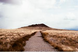 A path extends toward the summit of the central volcano. Three Sisters Volcanoes, New Mexico