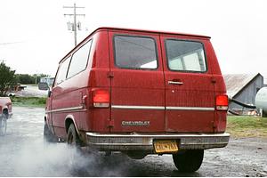 Nardina and her dog Bristol captain the local taxi which transports fishermen from King Salmon Airport to the Peter Pan Cannery. Naknek, Alaska